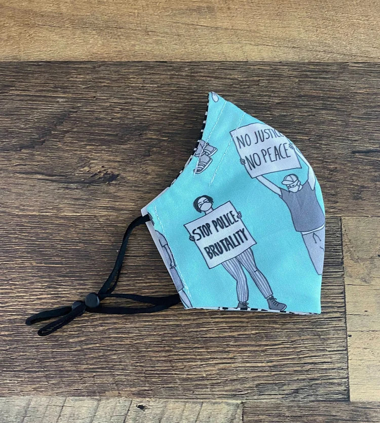High quality mask, handmade with care in California. This mask style offers excellent protection and comfort. One size fits most.