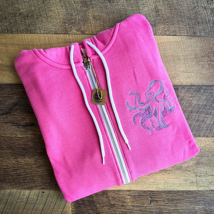 Features: Side-seamed. Retail fit. Unisex sizing. Full zip closure with white taping. Ribbed cuffs and waistband. Kangaroo pockets. White chord drawstring.
